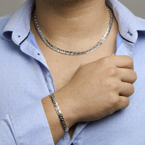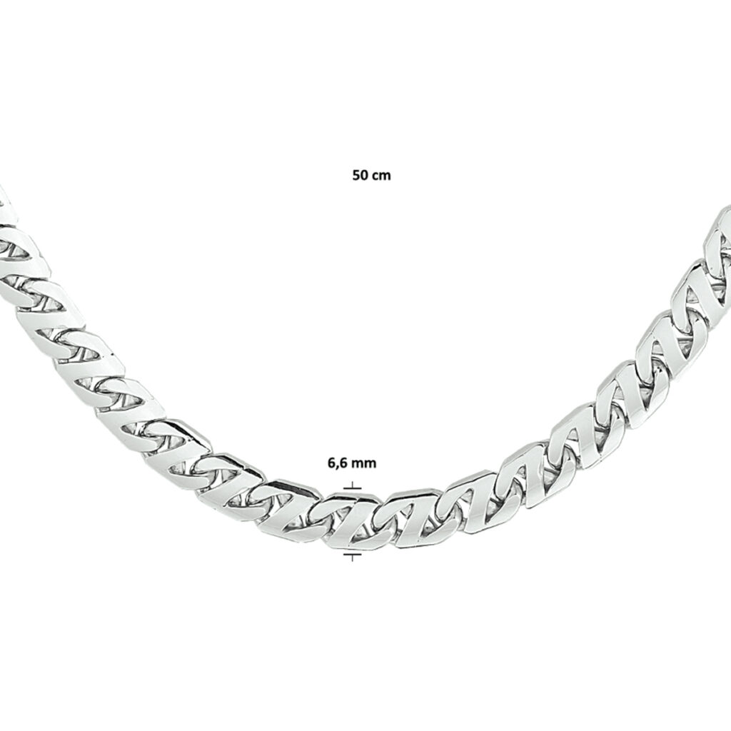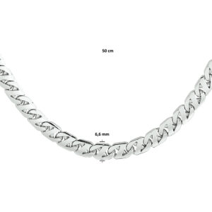 Gerhodineerd zilveren heren ketting met een schakelbreedte van 6.6mm. Het collier heeft een draaglengte van 50cm en is uitgevoerd met een karabijn sluiting.