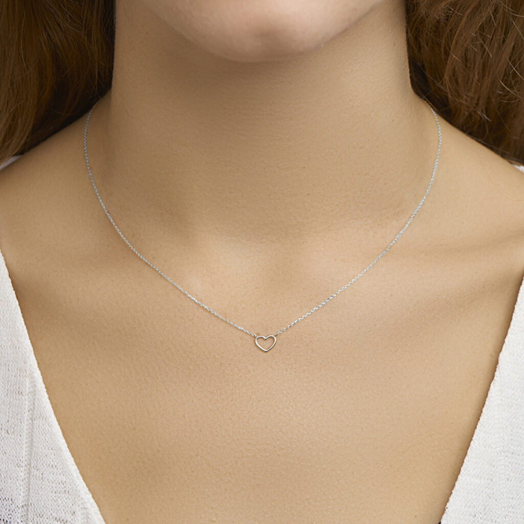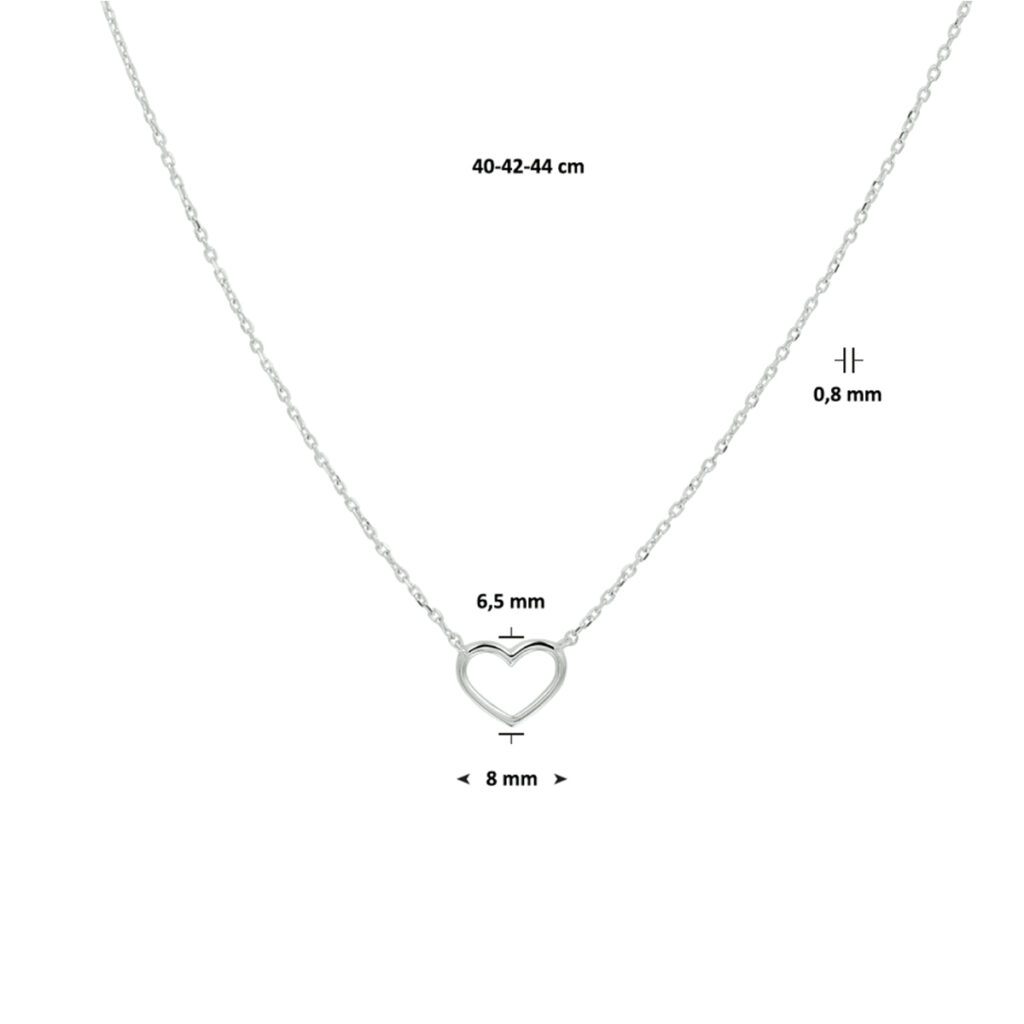 Dit fijne 14-karaats witgouden collier met een open hartje geeft je outfit een vriendelijke touch. Het collier is verkrijgbaar in draaglengtes van 40, 42 en 44 cm. Dit kettinghanger dames goud sieraad is perfect voor dagelijks gebruik en voegt een subtiel romantisch accent toe. Tip: combineer dit collier met bijpassende hartjessieraden uit onze collectie voor een extra liefdevolle uitstraling!