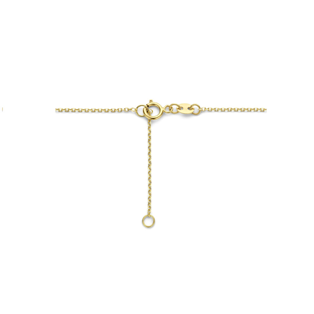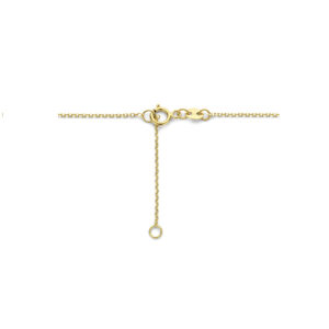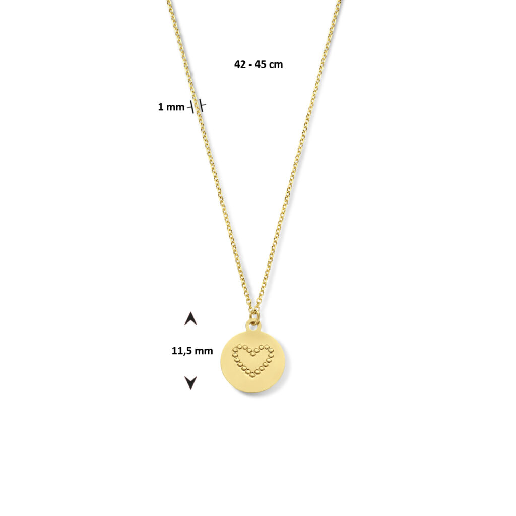 14k Geelgouden collier uitgevoerd met een rondje van 11.5mm en een hartje. Het collier heeft draaglengtes van 42 en 45cm. De schakelbreedte is 1.0mm.