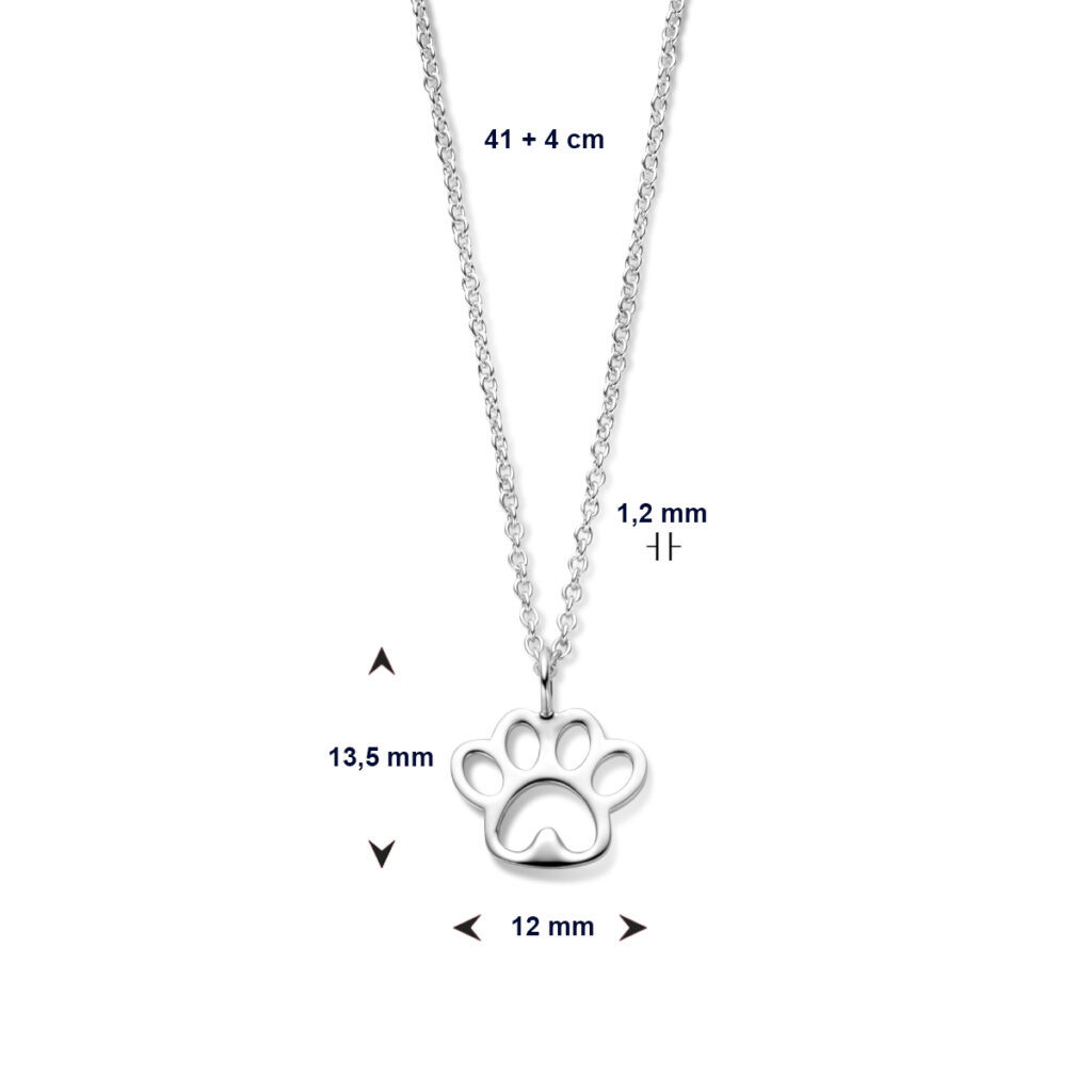 Zilveren Collier met Hondenpoot – 41 + 4 cm