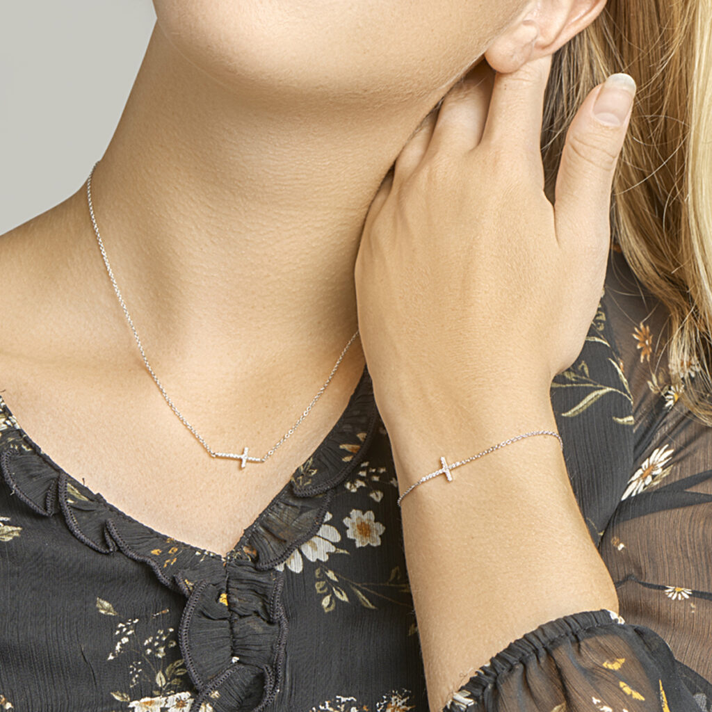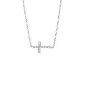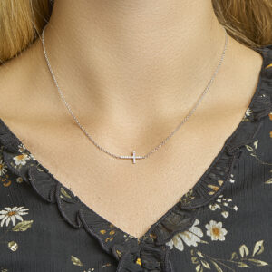 Deze Horizontale Zirkonia Kruis Hanger met Anker Collier is volledig gemaakt van 925 sterling zilver, de allerbeste kwaliteit zilver, en voorzien van een laagje rhodium met meerdere zirkonia’s. Deze kruisketting bestaat uit een slanke anker schakelketting met daaraan een horizontale kruisvormige hanger die volledig bezet is met meerdere kleurloze zirkonia’s die mooi glinsteren. Zowel de hanger alsook het collier zijn volledig gepolijst en dus voorzien van een mooie glans die extra lang behouden blijft dankzij het laagje rhodium, waardoor u extra lang van dit mooie sieraad kunt genieten. Deze kruis ketting vrouwen is voorzien van een handige karabijnsluiting, waardoor u het collier gemakkelijk om- en afdoet. De horizontale zirkonia kruis hanger hangt aan een anker collier met een lengte van 41 cm, inclusief een verlengstukje van 4 cm. De hanger heeft een breedte van 15 mm en een hoogte van 9 mm.
