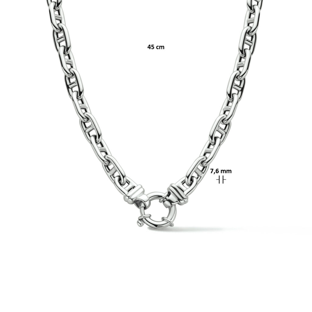Collier Marine 7,6 Mm 45 Cm Met Groot Springslot Zilver Gerhodineerd