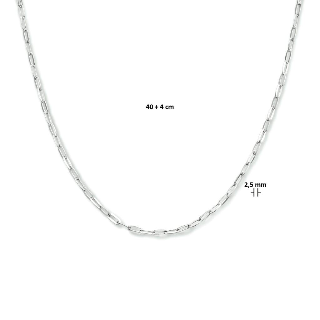 Gerhodineerd 925 zilveren paperclip collier uitgevoerd met een karabijnslot. Het collier heeft een draaglengte van 40cm en een extensie van 4cm. De schakelbreedte is 2.5mm.