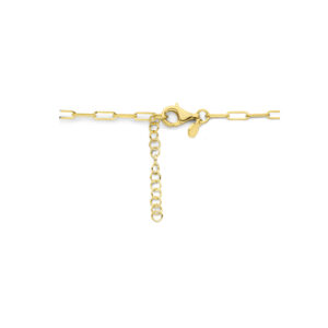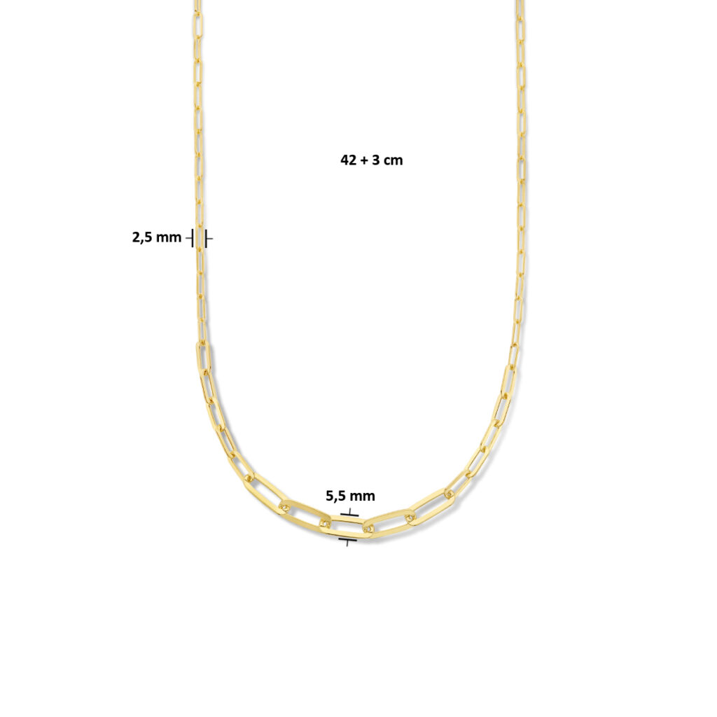 Geelgoud op 925 zilveren paperclip collier met een draaglengte van 42cm met 3cm extensie. Het collier is uitgevoerd met een stevige karabijn sluiting. De schakelbreedte is 5.5mm.