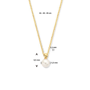 Dit Geelgouden Anker Collier met Zoetwaterparel Hanger is volledig gemaakt van 14 karaats geelgoud, de allerbeste kwaliteit geelgoud, met een gepolijst oppervlak en een witte zoetwaterparel. Dit collier heeft een lengte van 45cm en de hanger heeft een breedte van 5,5mm met een hoogte van 9,5mm. Dit sieraad bestaat uit een slanke anker ketting met meerdere opengewerkte schakels die fijntjes in elkaar haken, met onderaan een bolvormige hanger met een witte zoetwaterparel die mooi glanst. Dit collier is voorzien van een fijntjes gepolijst oppervlak dat mooi glanst, met aan de achterkant een handige sluiting, waarmee u dit collier gemakkelijk om- en afdoet. Deze hanger is geschikt voor dames en is bijzonder leuk als cadeau. Dit sieraad zal tevens niet misstaan op bijvoorbeeld een luxe gala of een black-tie event. Deze hanger behoort tot onze huiscollectie, waardoor u verzekerd bent van de allerbeste kwaliteit tegen de scherpste prijs!
