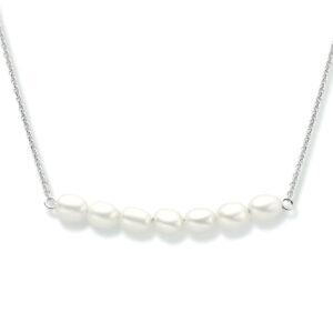 Gerhodineerd 925 zilveren collier uitgevoerd met zoetwaterparels. Het collier heeft een draaglengte van 42cm met een extensie van 3cm en een stevige karabijn sluiting. De schakelbreedte is 1.0mm.
