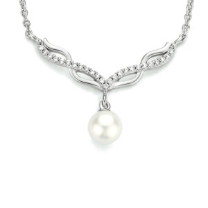 Gerhodineerd 925 zilveren collier uitgevoerd met een zoetwaterparel en een schitterende zirkonia rij. Het collier heeft een draaglengte van 42cm met een extensie van 3cm en een stevige karabijn sluiting. De schakelbreedte is 1.4mm.