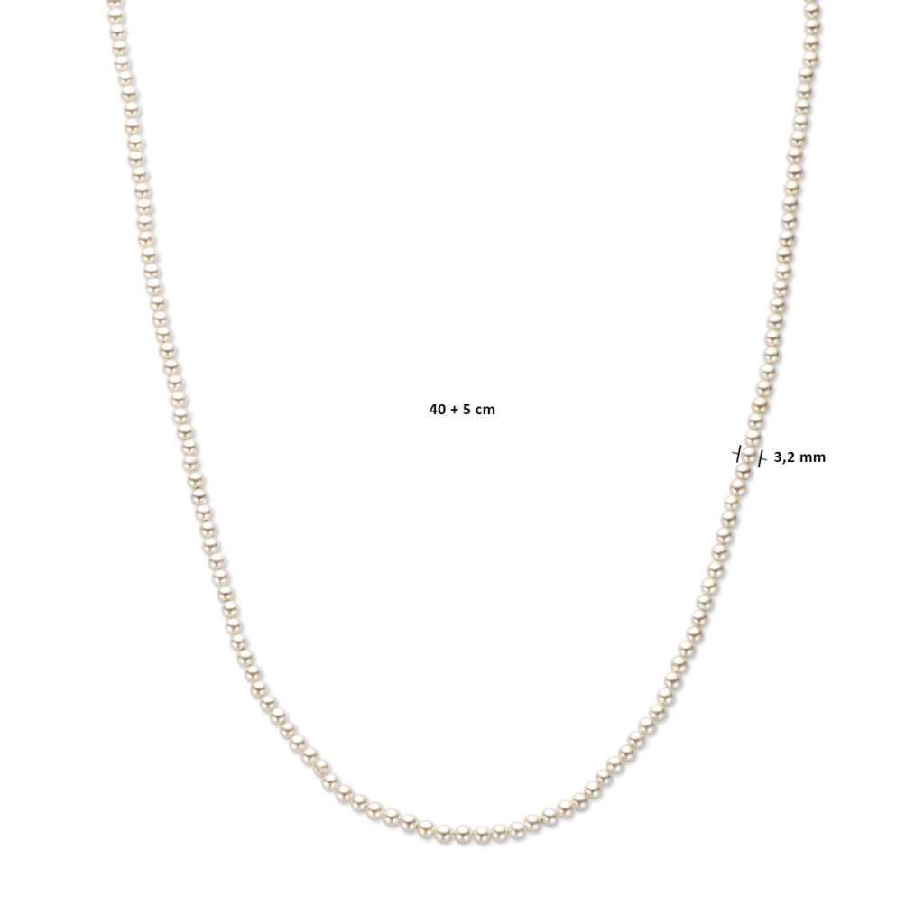 Geelgoud op 925 zilveren collier uitgevoerd met zoetwaterparels. Het collier heeft een draaglengte van 40cm met 5cm extensie. Uitgevoerd met karabijnsluiting. Geen garantie op de plating.