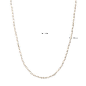 Gerhodineerd 925 zilveren collier uitgevoerd met zoetwaterparels. Het collier heeft een draaglengte van 40cm met 5cm extensie. Uitgevoerd met karabijnsluiting.