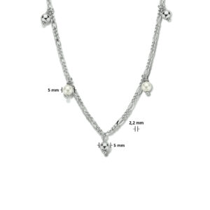 Gerhodineerd 925 zilveren collier uitgevoerd met zoetwaterparels. Het collier heeft een draaglengte van 40cm en een stevige karabijn sluiting. De schakelbreedte is 2.2mm.