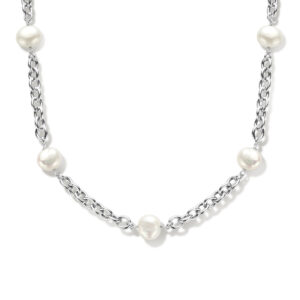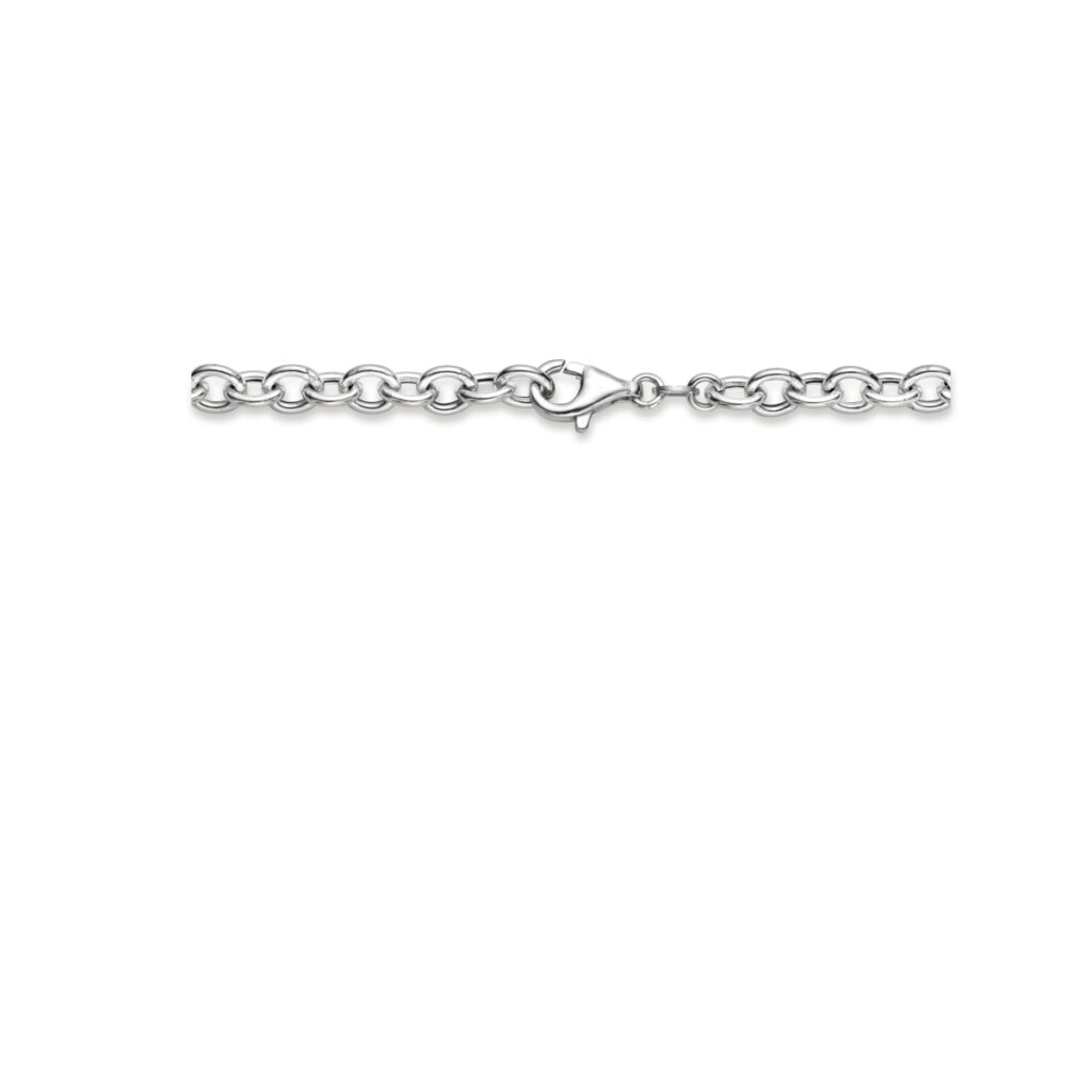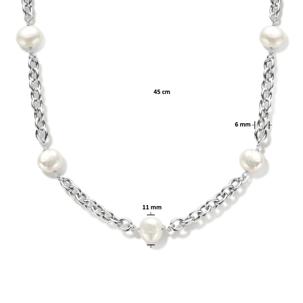 Gerhodineerd 925 zilveren collier uitgevoerd met zoetwaterparel. Het collier heeft een draaglengte van 45cm. De schakelbreedte is 6mm. Uitgevoerd met een karabijn sluiting.