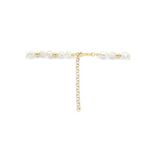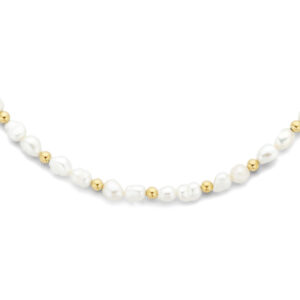 Geelgoud op 925 zilveren collier uitgevoerd met schitterende zoetwaterparels. Het collier heeft een draaglengte van 41cm met 5cm extensie. Geen garantie op plating.