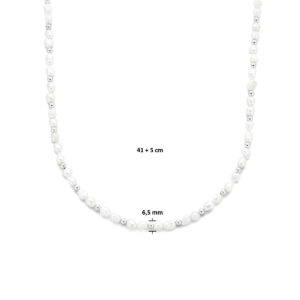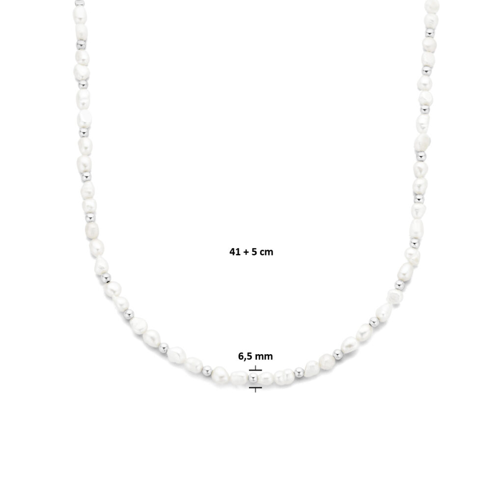 Gerhodineerd 925 collier uitgevoerd met schitterende zoetwaterparels. Het collier heeft een draaglengte van 41cm met 5cm extensie.