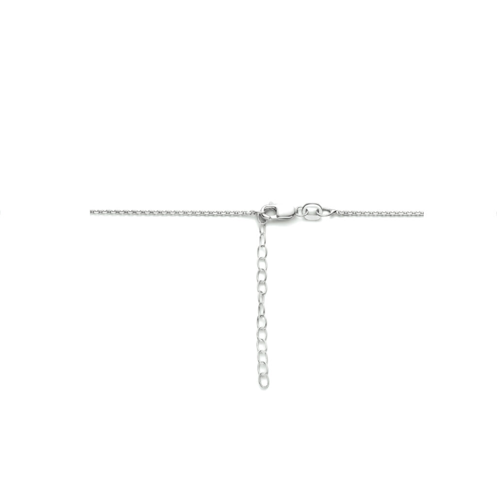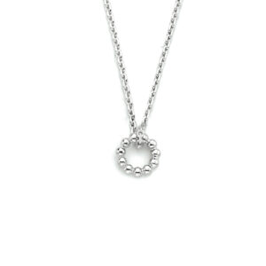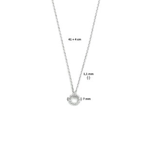 Gerhodineerd 925 zilveren collier uitgevoerd met een ronde hanger. Het collier heeft een draaglengte van 41cm met een extensie van 4cm en een stevige karabijn sluiting. Het hangertje heeft een diameter van 7mm. De schakelbreedte is 1.1mm.