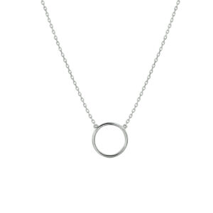 Dit collier is gemaakt van 14 karaats witgoud, de allerbeste kwaliteit witgoud, met een fijntjes gepolijst oppervlak dat mooi glanst. De witgouden ketting bestaat uit meerdere slanke Anker schakels die fijntjes op elkaar aansluiten en die samen een stijlvol geheel vormen, met aan de voorkant een opengewerkt rondje als hanger. Aan de achterkant zit een handige karabijnsluiting, waardoor u dit collier gemakkelijk om- en afdoet. Het collier heeft een lengte van 44cm met draaglengtes van 40cm, 42cm en 44cm. Het opengewerkte rondje heeft een diameter van 9,5mm. Dit collier is speciaal ontworpen voor dames en geschikt voor diverse gelegenheden.