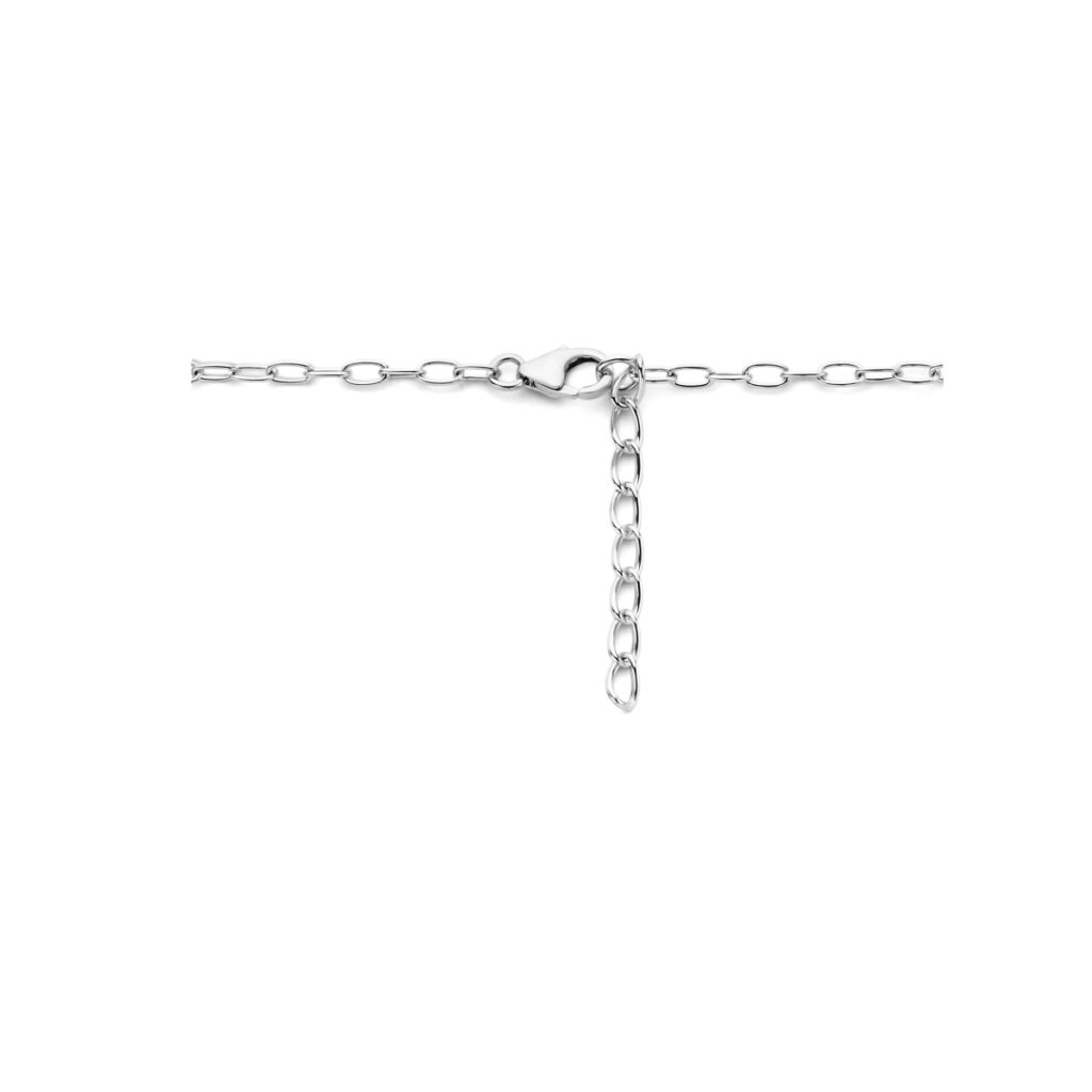 Gerhodineerd 925 zilveren collier uitgevoerd met een ronde hanger en een karabijn sluiting. Het collier heeft een draaglengte van 42cm met een extensie van 3cm. De schakelbreedte is 2.2mm.