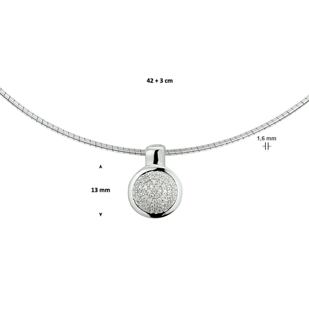 Chique gerhodineerd 925 zilveren collier uitgevoerd met een luxe pave van briljant geslepen zirkonia. Het collier heeft een draaglengte van 42cm met een extensie van 3cm en een karabijn sluiting. De schakelbreedte is 1.6mm. De schitterende zirkonia stenen maken dit sieraad tot een ware eyecatcher. Het geheel heeft een betoverend en stijlvol ontwerp.