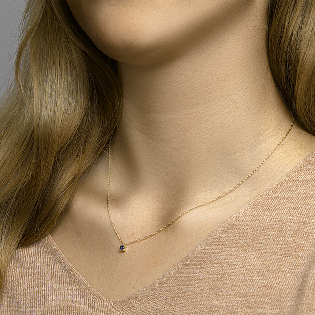 14k Geelgouden anker collier uitgevoerd met een schitterende saffier. Het collier heeft draaglengtes van 40, 42 en 44cm. De schakelbreedte is 1.0mm.