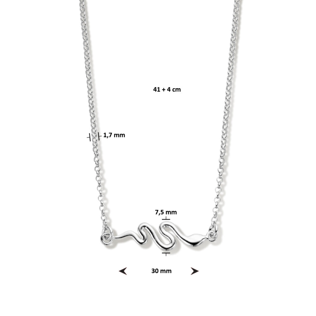 Gerhodineerd 925 zilveren collier met een slang voorstelling. Het collier heeft een draaglengte van 41cm en een extensie van 4cm. De schakelbreedte is 1.7mm. Uitgevoerd met een karabijn sluiting.