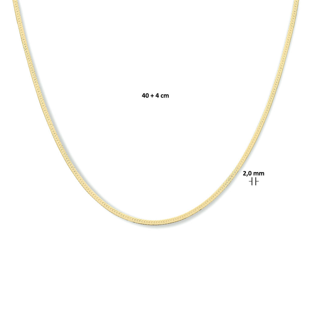Collier Slang Plat 2,0 Mm 40 + 4 Cm 3 Micron Zilver Verguld (Geel)
