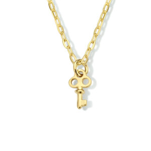 Dit mooie collier is volledig gemaakt van 925 sterling zilver, met een goudkleurige coating en een fijntjes gepolijst oppervlak dat mooi glanst. Het sieraad bestaat uit fijne ankerschakels, die mooi op elkaar aansluiten, met aan de onderkant een hanger in de vorm van een sleutel. Deze heeft een afmeting van 9 x 5 mm. Het collier heeft aan de achterzijde een stevige karabijn sluiting waarmee u het sieraad gemakkelijk om- en afdoet. Verder heeft het collier een draaglengte van 41 cm met daaraan een verlengstukje van 4 cm, waardoor de totale lengte 45 cm bedraagt.