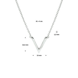 Dit Zilveren Anker Collier met V-hanger is volledig gemaakt van 925 sterling zilver, de allerbeste kwaliteit zilver, en voorzien van een laagje rhodium. Dit collier bestaat uit een slanke anker schakelketting met een V-vormige hanger. Zowel het collier alsook de V-vormige hanger is gepolijst en dus voorzien van een mooie glans die extra lang behouden blijft dankzij het laagje rhodium, waardoor u extra lang van dit mooie sieraad kunt genieten. Dit collier is tevens voorzien van een handige karabijnsluiting, waardoor u dit collier gemakkelijk om- en afdoet. Dit Zilveren Anker Collier met V-hanger heeft een lengte van van 41cm + 4cm verlengstukje en de V-vormige hanger heeft een breedte van 13,5mm met een hoogte van 13mm.