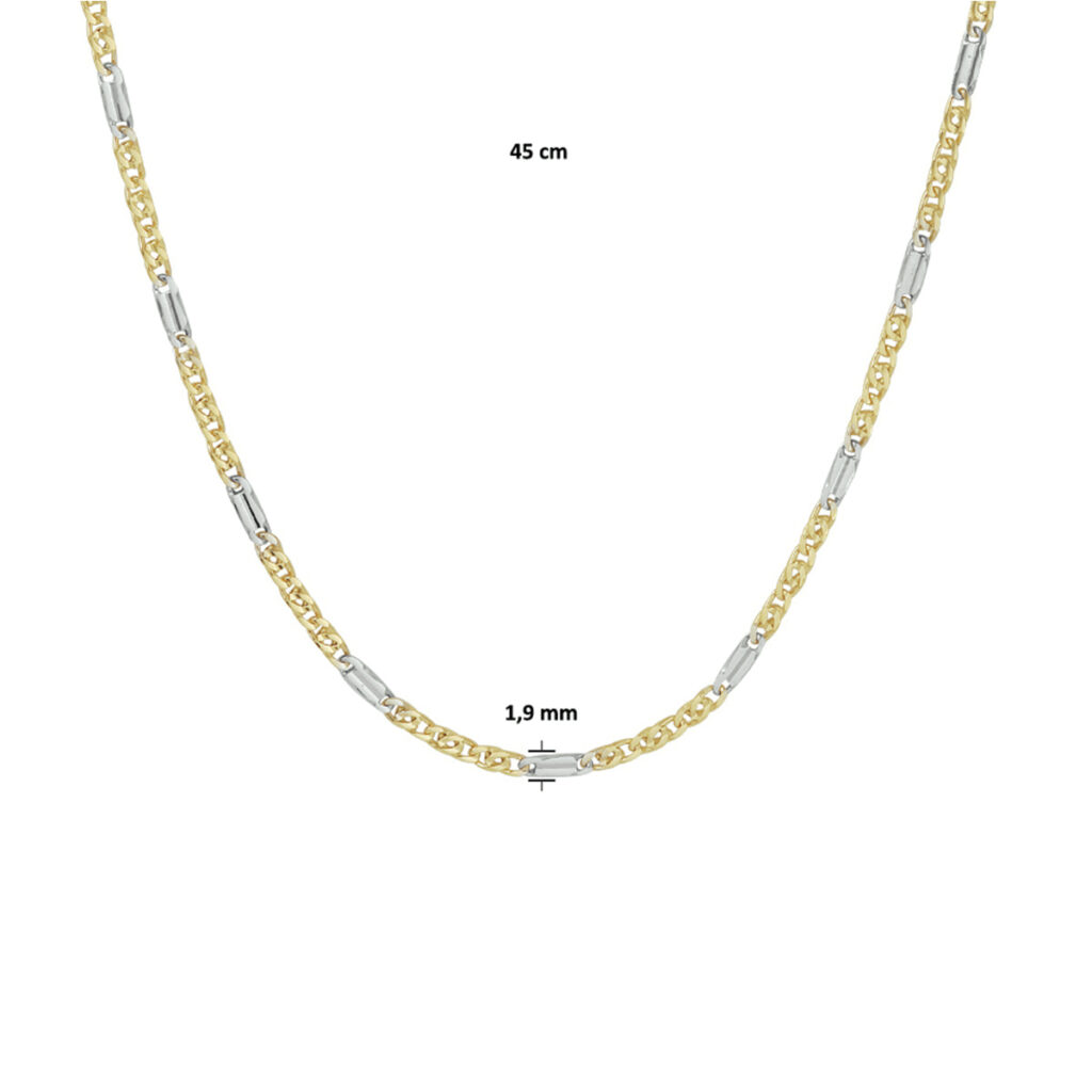 Collier Valkenoog Met Tussenstuk 1,9 Mm 45 Cm 14K Bicolor Goud Geel/Wit