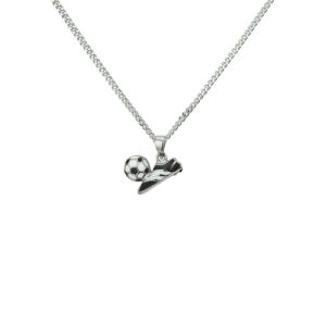 Deze kinderketting is volledig gemaakt van 925 sterling zilver, de allerbeste kwaliteit zilver, en voorzien van een fijntjes gepolijst oppervlak dat mooi glanst. Dit collier bestaat uit meerdere Gourmet schakels die fijntjes op elkaar aansluiten en samen een stijlvol geheel vormen. Aan de voorkant is het collier voorzien van een hanger in de vorm van een voetbalschoen met een voetbalschoen op de neus. Zowel de schoen alsook de voetbal zijn gekleurd met witte en zwarte emaille. Aan de achterkant zit een handige karabijnsluiting, waardoor u dit collier gemakkelijk om- en afdoet. Deze ketting heeft een totale lengte van 40cm met een dikte van 1,4mm. Extra leuk als cadeau voor de kleine voetbalfans!