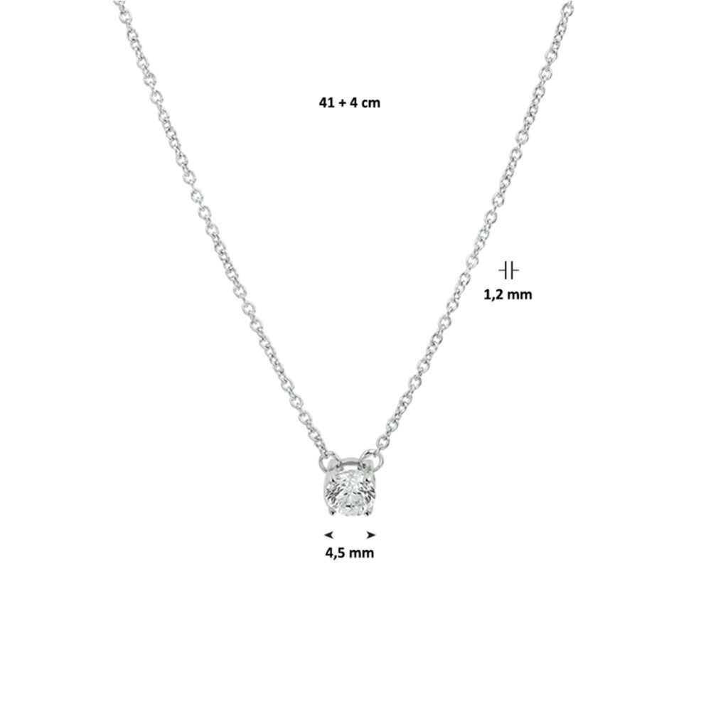 Gerhodineerd zilveren collier met zirkonia en een poli afwerking. De lengte bedraagt 41cm met 4cm extensie en de schakelbreedte bedraagt 1.2mm.
