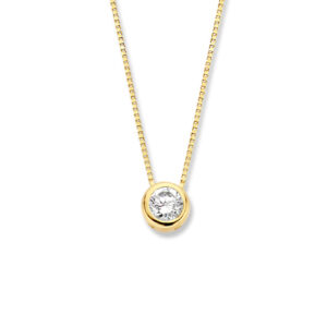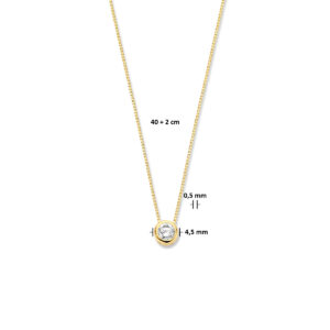 Dit Venetiaans Collier van Gepolijst Geelgoud met Ronde Infinity Hanger is volledig gemaakt van 14 karaats geelgoud, de allerbeste kwaliteit geelgoud, met een gepolijst oppervlak en een kleurloze zirkonia. Dit collier heeft een lengte van 42cm met een dikte van 0,5mm en de hanger heeft een diameter van 4,5mm. Dit sieraad bestaat uit een slanke Venetiaanse ketting met meerdere opengewerkte schakels die fijntjes op elkaar aansluiten, met onderaan een ronde hanger die voorzien is van een kleurloze zirkonia die mooi glinstert. Dit collier is voorzien van een fijntjes gepolijst oppervlak dat mooi glanst, met aan de achterkant een handige sluiting, waarmee u dit collier gemakkelijk om- en afdoet. Deze hanger is geschikt voor dames en is bijzonder leuk als cadeau. Dit sieraad zal tevens niet misstaan op bijvoorbeeld een luxe gala of een black-tie event. Deze hanger behoort tot onze huiscollectie, waardoor u verzekerd bent van de allerbeste kwaliteit tegen de scherpste prijs!