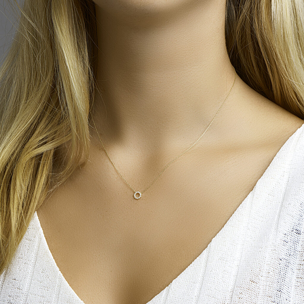 Geelgouden collier met zirkonia. De lengte bedraagt 40cm met 4cm extensie en de schakelbreedte is 0.8mm.