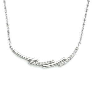 Gerhodineerd 925 zilveren collier uitgevoerd met een schitterende zirkonia rij. Het collier heeft een draaglengte van 42cm met een extensie van 3cm en een stevige karabijn sluiting. De schakelbreedte is 1.4mm.