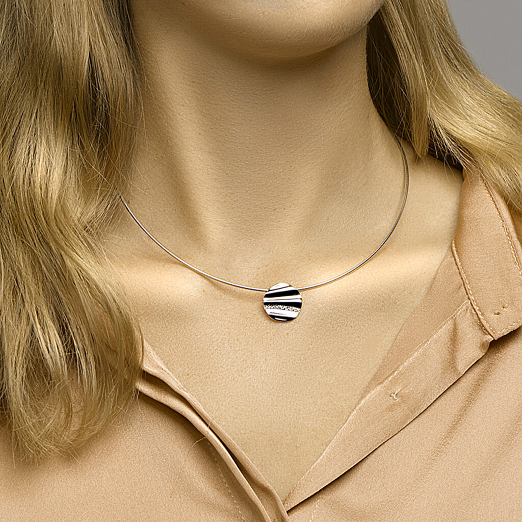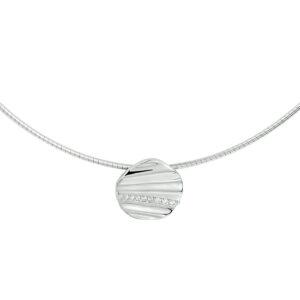 Gerhodineerd 925 zilveren collier uitgevoerd met een hanger in de vorm van een rondje met daarin een schitterende zirkonia rij. Het collier heeft een draaglengte van 43cm met een extensie van 3cm en een stevige karabijn sluiting. Het rondje heeft een diameter van 16.7mm. De schakelbreedte is 1.25mm.