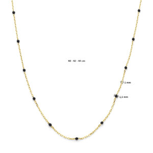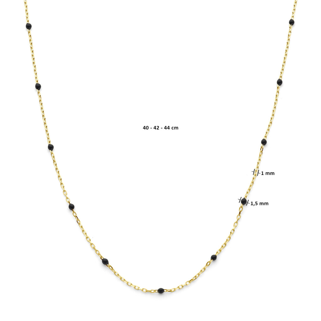 14k Geelgouden collier uitgevoerd met zwart emaille. Het collier heeft schakelbreedte van 1mm. Het collier is uitgevoerd met een karabijnslot.
