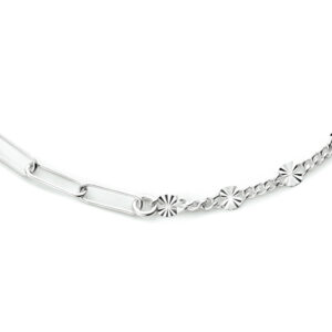Gerhodineerd 925 zilveren collier met een schakelbreedte van 3.8mm, uitgevoerd met een anker schakel en plaatjes. De zilveren ketting heeft een draaglengte van 41cm met een extensie van 4cm en een stevige karabijn sluiting.