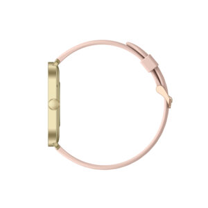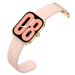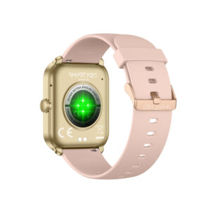 Dit Smarty Gouden Smartwatch horloge met nr: SW070F is een stap in de toekomst. Door zijn Amoled scherm is het beeld vele malen scherper en intenser. De goudkleurige kast is gemaakt van ABS kunststof met een gehard glas. Aan de kast zit een roze siliconen band met een gespsluiting. Het rechthoekige horloge heeft een afmeting van 46,5×40,5mm en is spatwaterdicht. Bij dit horloge krijg je een zwarte siliconen band extra. Deze smartwatch is sportief, stijlvol, maar zeker gebruiksvriendelijk. Om door apps, berichten en tekst te bladeren hoeft je alleen maar op het glas te tikken of de knop te gebruiken. Tevens heeft het een AI voice functie.