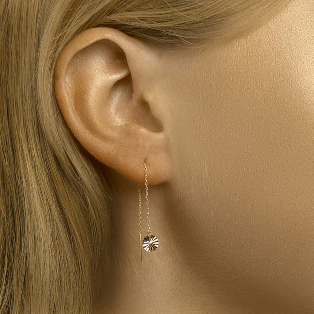 Doortrekoorbellen Rondje Gediamanteerd 14K Geelgoud
