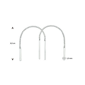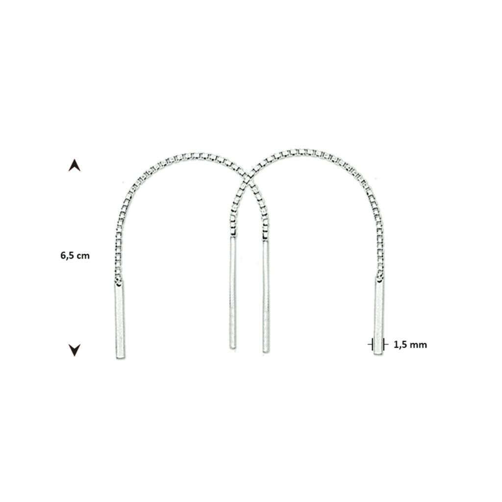 Deze Zilveren Doortrekoorbellen met Staafjes zijn volledig gemaakt van 925 sterling zilver, de allerbeste kwaliteit zilver, met een mooi gepolijst oppervlak. Deze zilveren doortrekoorbellen zijn voorzien van een slanke schakelketting met aan de uiteinden slanke glanzende staafjes. Deze doortrekoorbellen hebben een lengte van 65mm en hebben een zeer elegante uitstraling die niet snel zal gaan vervelen. Deze doortrekoorbellen zijn speciaal voor dames.