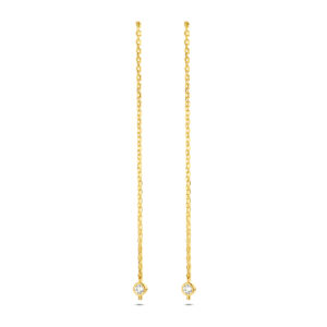 Deze Doortrekoorbellen van Geelgoud met Zirkonia Steentje zijn volledig gemaakt van 14 karaats geelgoud, de allerbeste kwaliteit geelgoud, met een gepolijst oppervlak en een kleurloze zirkonia die mooi glinstert. Deze doortrekoorbellen hebben een hoogte van 95mm met een breedte van 0,8mm. Dit sieraad bestaat uit een slanke schakelketting met aan het ene uiteinde een slanke staafhanger met aan het andere uiteinde een robuuste zirkonia die mooi glinstert. Deze oorsieraden zijn geschikt voor dames en zijn bijzonder leuk als cadeau. Dit sieraad zal tevens niet misstaan op bijvoorbeeld een luxe gala of een black-tie event. Deze oorsieraden behoren tot onze huiscollectie, waardoor u verzekerd bent van de allerbeste kwaliteit tegen de scherpste prijs!