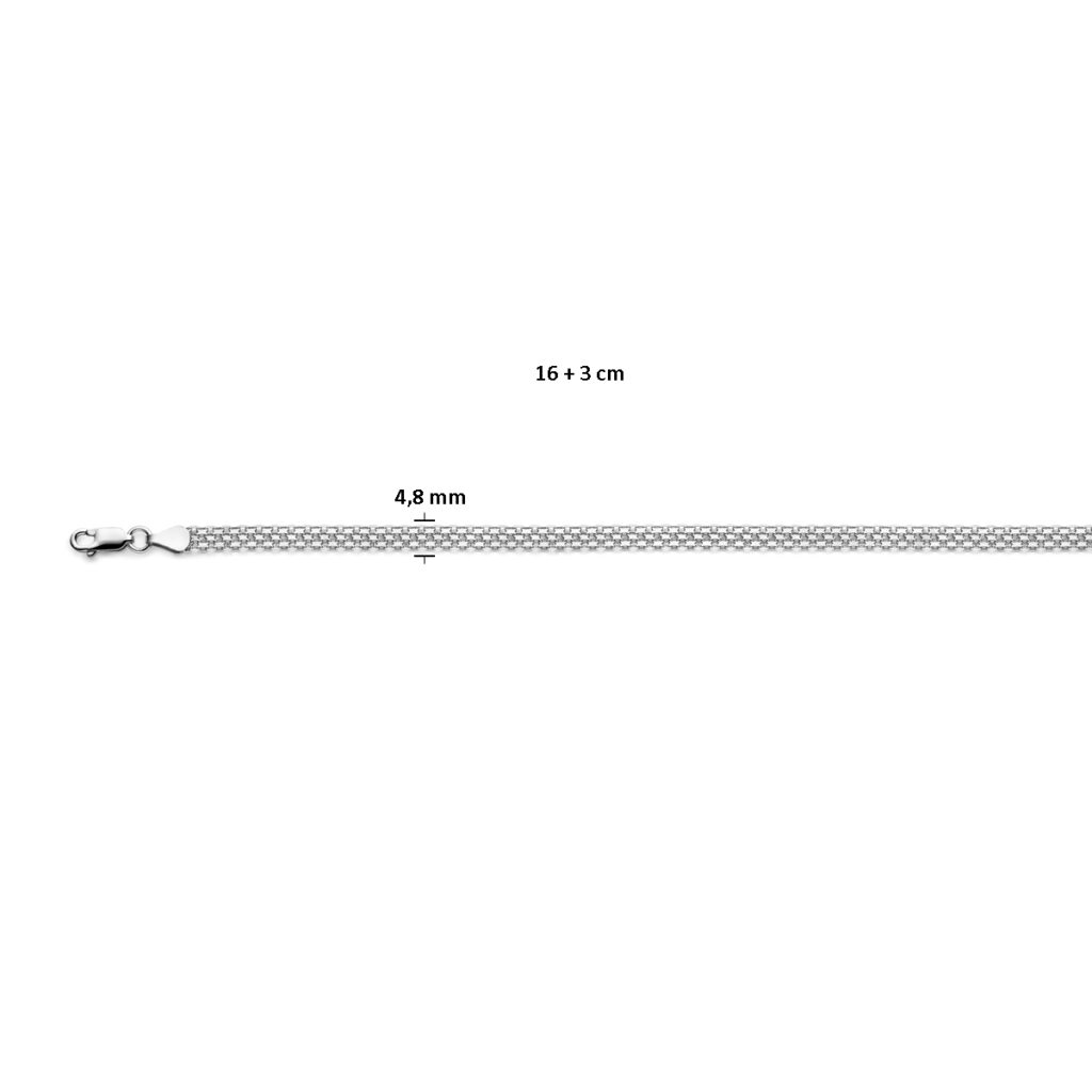 Gerhodineerd 925 zilveren lengteartikelen met dubbel gourmette schakel van 4.8mm. Uitgevoerd met een karabijnsluiting.