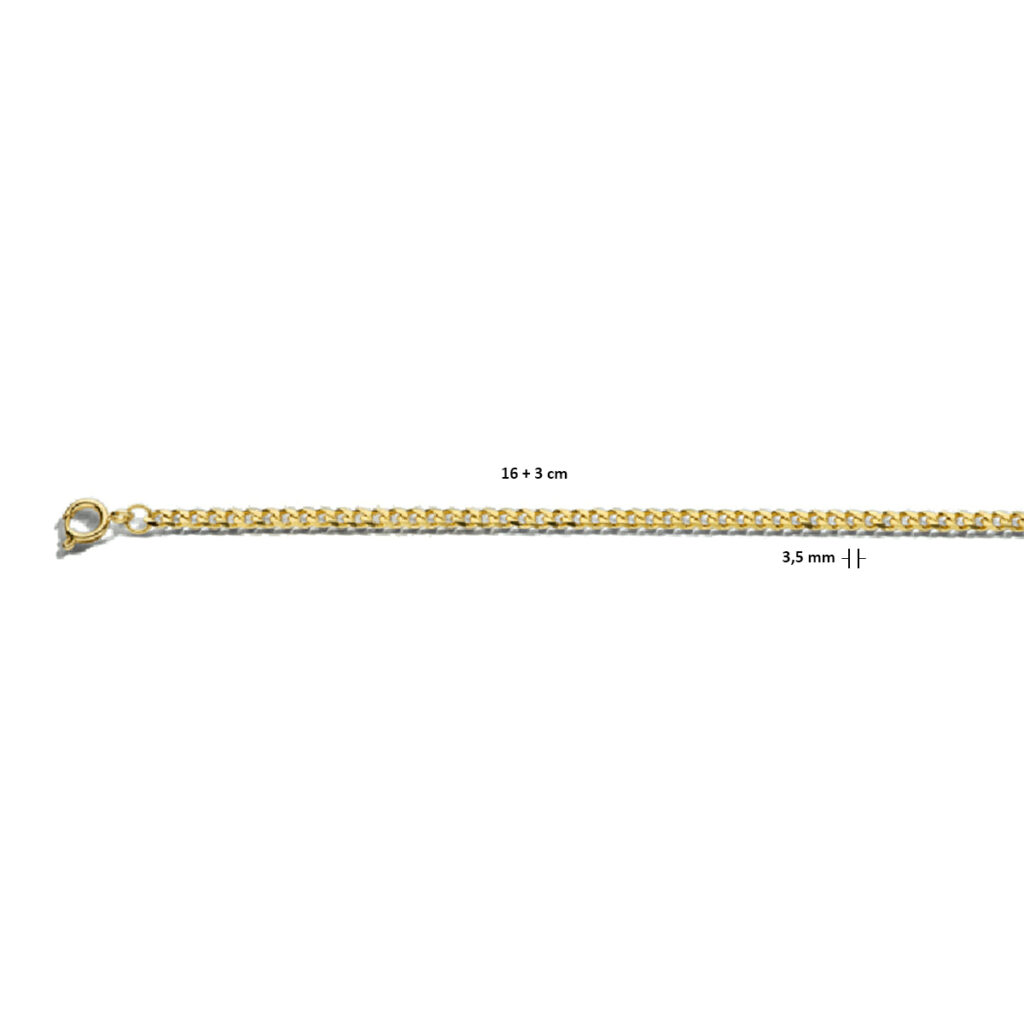 Stalen geslepen gourmet lengte artikel met een goudkleurige ion plating. Het lengte artikel heeft een een groot slot. Beleef langdurig plezier aan je sieraden en kies voor duurzaam staal: een materiaal dat niet roest of verkleurt. Zelfs niet tijdens het zwemmen! De schakelbreedte is 3.5mm.