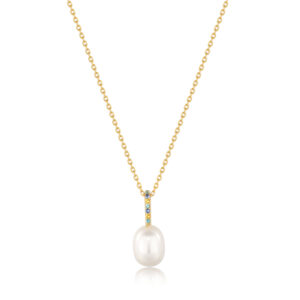 Voeg een opvallend parelaccent toe aan je gelaagde kettingen met deze 14kt vergulde sterling zilveren hanger, afgewerkt met een sprankeltje gekleurde glinstering. Aan een delicate gouden ketting hangt een hanger van echte parels, gestileerd met een regenboog van gekleurde nanojuweeltjes. Combineer deze moderne versie van parels met je favoriete kettingen voor een frisse kijk op een klassieke look.