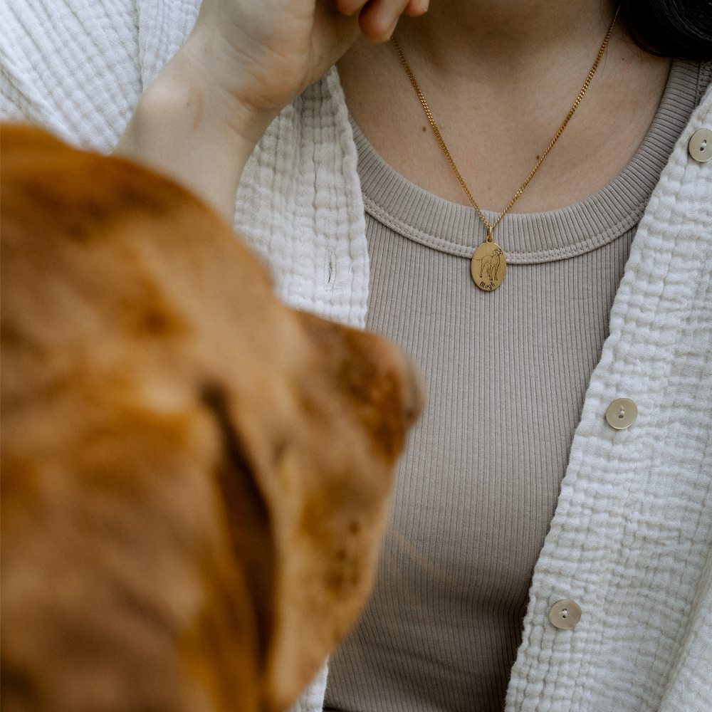 Gouden Hanger met Pomeriaan Hondje + Naam Graveren
