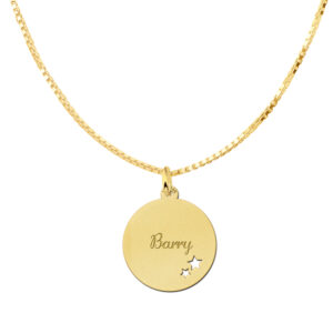 Dit verfijnde gouden hangertje is prachtig bewerkt met twee subtiele sterren en wordt speciaal voor u gegraveerd met de naam van een dierbare. Gemaakt van 14 karaat goud, draagt u met dit sieraad iemands naam altijd dicht bij uw hart.