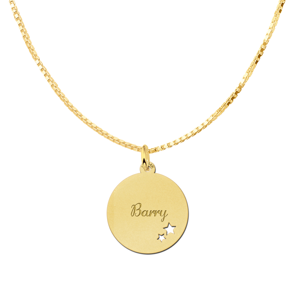 Gouden Naamplaatje met Twee Sterren – 14 Karaat Goud en Persoonlijke Gravure