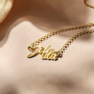 Vereeuwig uw naam met een stijlvolle nieuwe naamketting in een gebogen lettertype. Volg de laatste trends en draag een persoonlijk sieraad dat perfect bij u past.