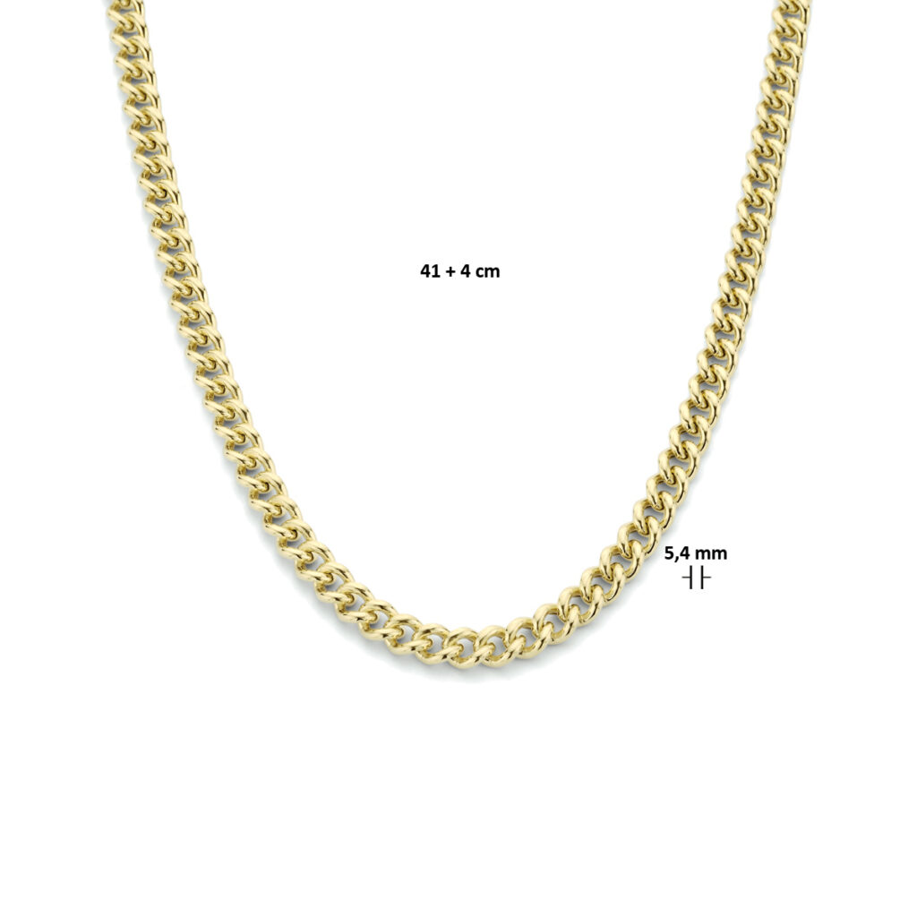 Geelgoud op 925 zilveren gourmet lengte artikel met een schakelbreedte van 5.4mm en een stevige karabijn sluiting. Van dit artikel is een variant met 3 micron goud plating beschikbaar. Onderaan deze pagina vindt u dit artikel.
