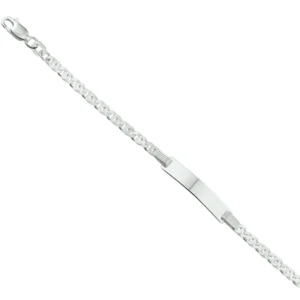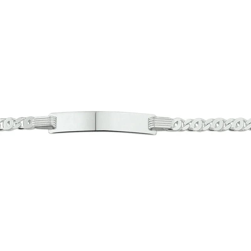 Deze Graveer Armband met Valekenoog Schakel is volledig gemaakt van 925 sterling zilver, de allerbeste kwaliteit zilver, en bestaat uit een slanke Figaro schakelketting met een rechthoekig, licht gebogen 5mm graveerplaatje in het midden van de armband. Hierop is ruimte voor bijvoorbeeld een persoonlijke tekst, naam of datum. Zo bent u verzekerd van een stijlvol en persoonlijk sieraad. Daarnaast is deze graveer armband voorzien van een handige karabijnsluiting, waarmee u deze armband gemakkelijk om- en afdoet. Deze Graveer Armband met Valekenoog Schakel is speciaal voor kinderen en is verkrijgbaar in de lengte 16cm + 2cm verlengstukje. Deze graveer armband behoort tot onze huiscollectie, waardoor u verzekerd bent van de allerbeste kwaliteit tegen de scherpste prijzen!