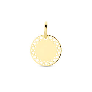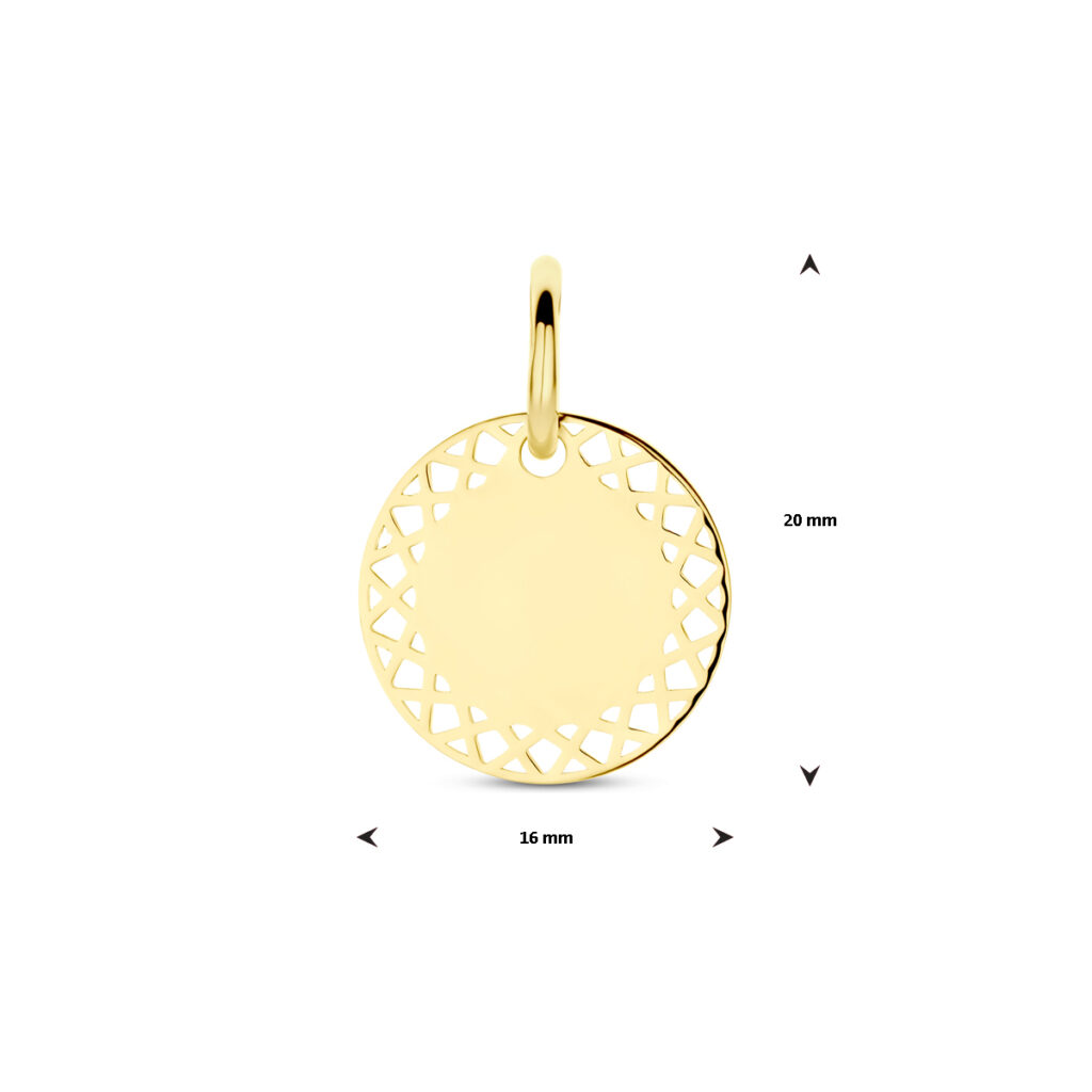 14k Geelgouden graveerhanger met een diameter van 12mm en een dikte van 0.6mm.