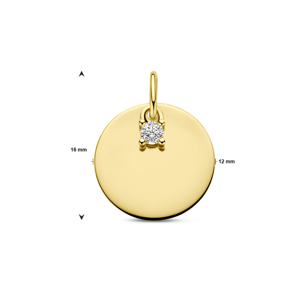 Graveerhanger Cirkel En Diamant H Si 14K Geelgoud